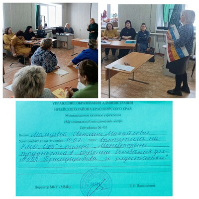 Десятого февраля прошло заседание специалистов образовательных учреждений, работающих с детьми ОВЗ. Я выступила с докладом "Мониторинг трудностей в обучении. Основания для АООП. Преимущества и недостатки. С коллегами выясняли почему родители поздно обращаются в ТПМПК? Как во время пройти комиссию и не упустить время помощи ребенка, который нуждается в дополнительных занятиях со специалистами. Педагоги делились своим опытом работы с родителями.